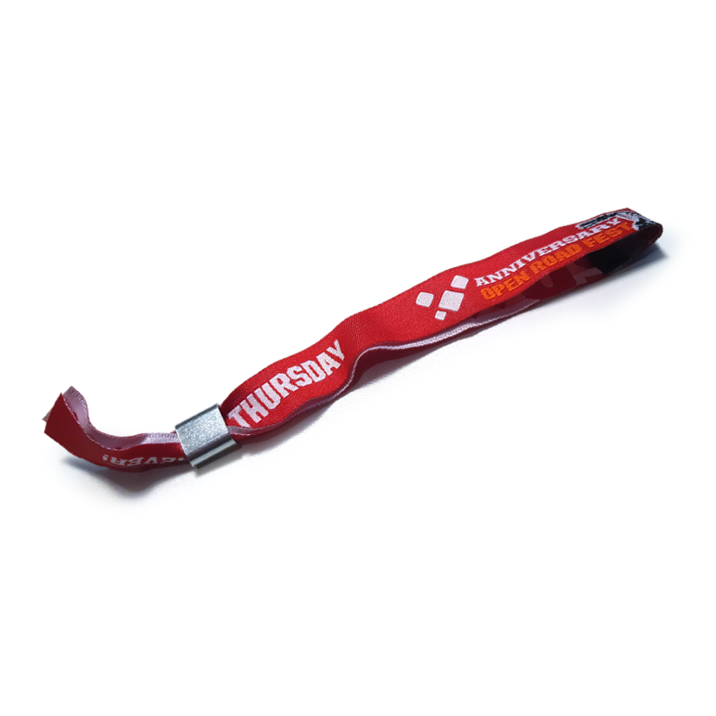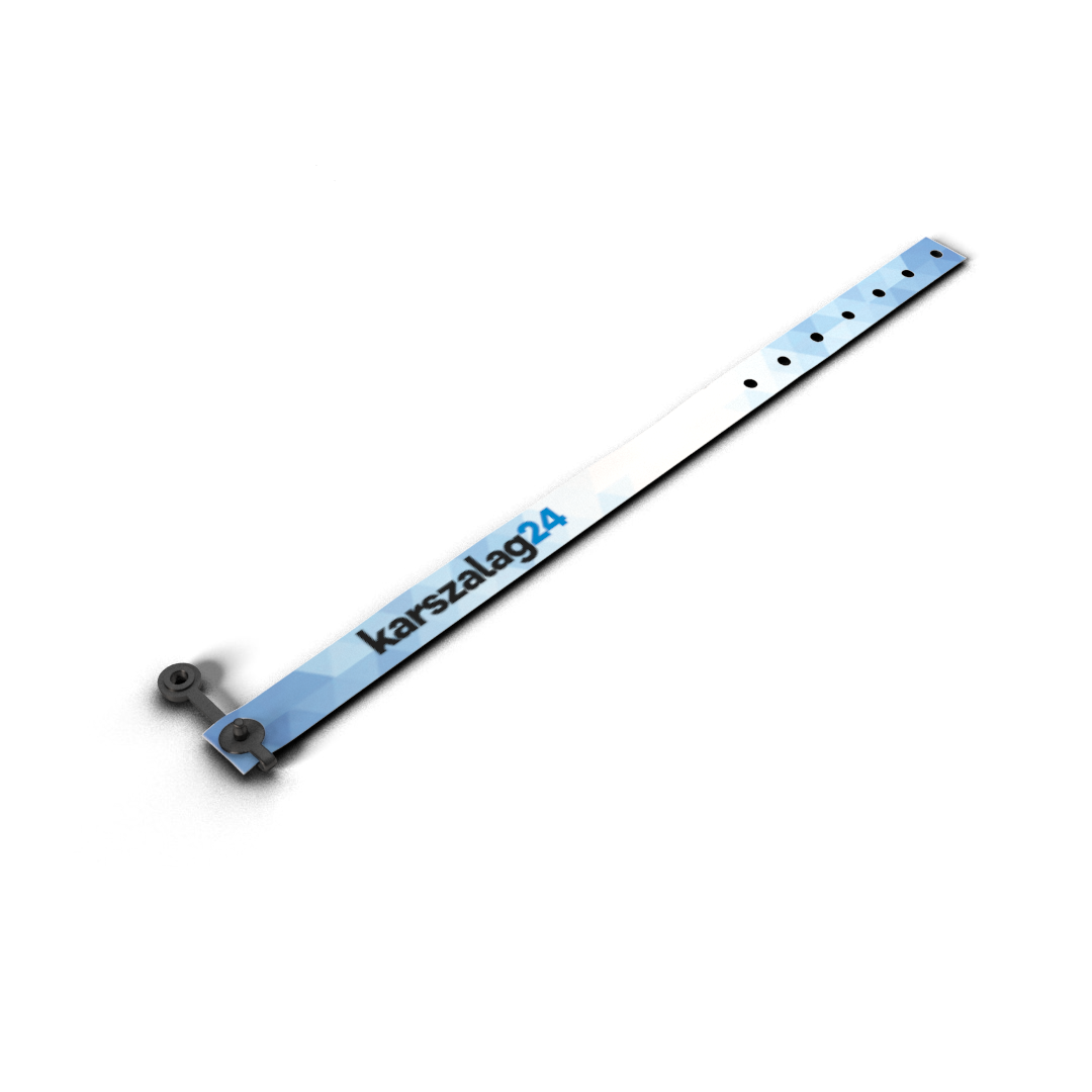 Az egyedileg gyártott prémium textil karszalagok a full color nyomásnak köszönhetően teljes mértékbe testre szabhatók, a műanyag pattintós zár pedig kényelmesen és gyorsan felhelyezhető viselője csuklójára. A karszalag átmérője a lyukaknak köszönhetően könnyedén beállítható a kívánt méretre.