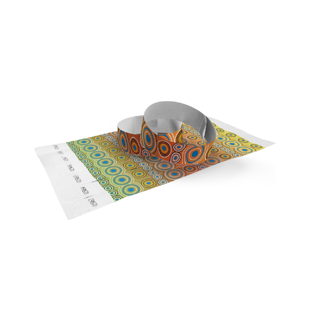 Náramky Tyvek sú dostupné v mimoriadne širokej škále farieb, ako aj niekoľko vzorovaných papierových náramkov a dostupné aj 25 mm široké náramky s kupónom.