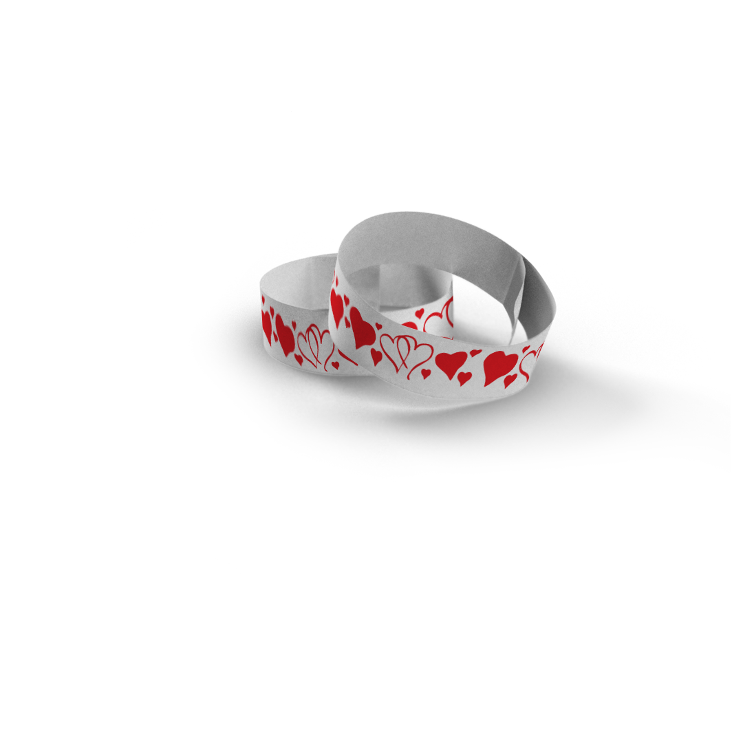 Papierové náramky sú dostupné v 2 rôznych šírkach ?? (19 mm) a 1? (šírka 25 mm). Viac využívaný je užší 19mm široký náramok, zvyčajne vhodný na väčšinu akcií. Vďaka väčšej šírke papierového 1? náramku poskytuje väčšiu potlačiteľnú plochu, takže je viac miesta na zobrazenie požadovaného nápisu, loga, grafiky. Náramok s oboma šírkami je dlhý 250 mm, takže ho možno pohodlne pripevniť na akúkoľvek veľkosť zápästia.