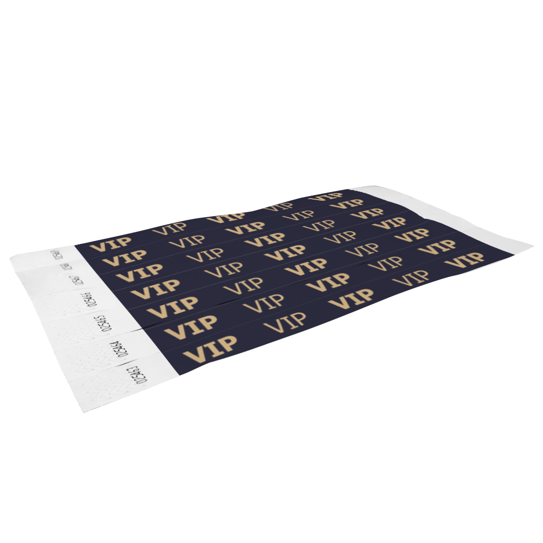 V.I.P. náramok 3/4? (19 mm) široký papierový náramok je bezpečným, odolným a cenovo výhodným vstupným riešením hlavne pre krátkodobé (1-3 dni) akcie. Mnoho vopred predtlačených vzorov, dostupné ihneď zo skladu aj ako vzroky vo viacerých farbách.